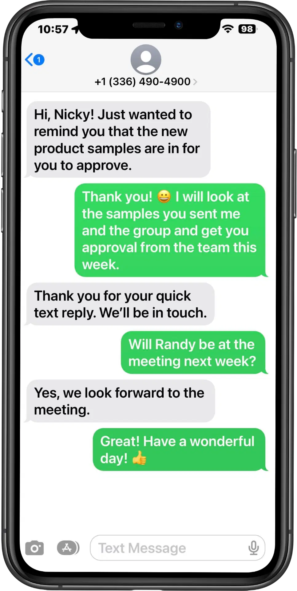 Texting doesn't end when your customers make a purchase. Follow up with product information or customer service assistance. Your customers will be grateful, and your company will stay top-of-mind.